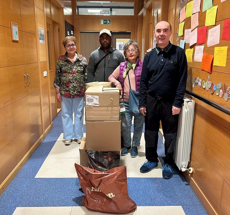 El pasado lunes día 29, pudimos hacer entrega de un lote de ropa excedente de nuestro “mercachollo”, como donación a Cáritas. En esta ocasión fueron dos personas responsables de la organización, quienes pasaron por nuestro centro Ordoiz para llevarse varias cajas que les preparamos.