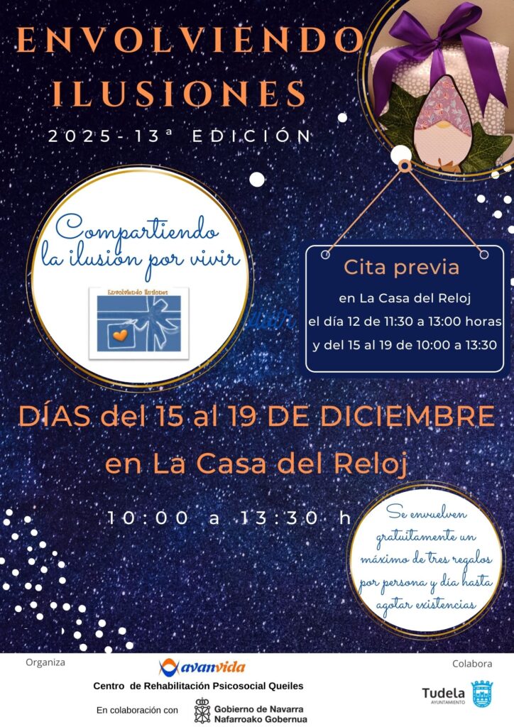 Días 17, 18 y 19 de diciembre: Sala Oihanburu (C/ Bardenas Reales, 78) de 10:30 a 13:00 horas