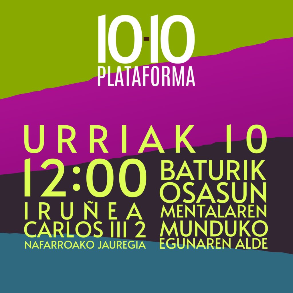 Este viernes, Pamplona se convirtió en epicentro de una nueva iniciativa ciudadana. Con motivo del Día Mundial de la Salud Mental, se presentó oficialmente la Plataforma 10-10, un espacio de encuentro impulsado por diversas entidades sociales y profesionales del ámbito psicosocial.