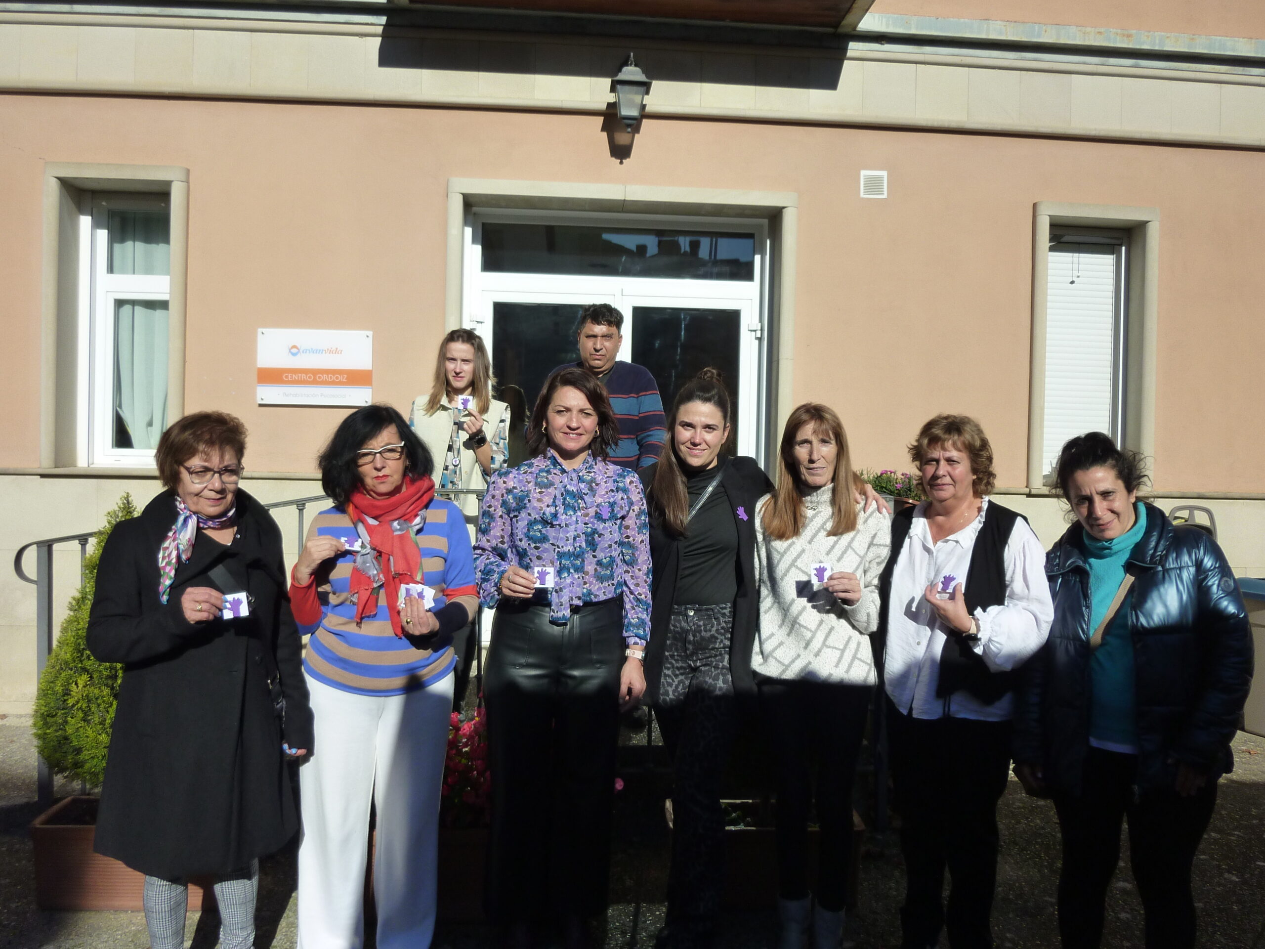 El pasado jueves día 14 se hizo entrega en nuestras instalaciones del Centro Ordoiz de un pedido de 500 broches de manitas moradas al Ayuntamiento de Estella-Lizarra.