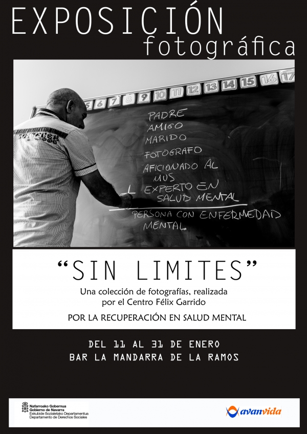 Desde el Centro Félix Garrido os invitamos nuevamente a visitar nuestra exposición de fotos «Sin Límites», por la recuperación en salud mental. Esta vez será del 11 al 31 de Enero en el bar La Mandarra de la Ramos, situado en la calle San Nicolás.