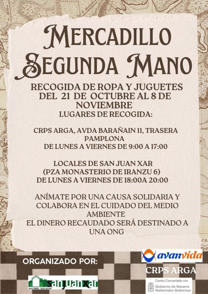 Desde el Centro Arga y la Asociación vecinal San Juan Xar hemos preparado una nueva edición de nuestro ya tradicional Mercadillo solidario, que se realizará el próximo 22 y 23 de Noviembre.